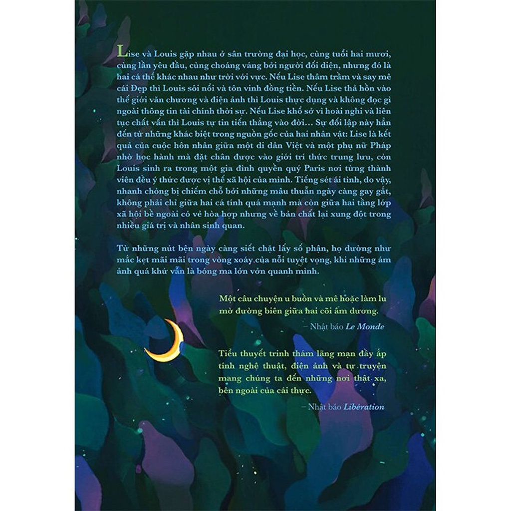 Giới thiệu sách: Lise và Louis gặp nhau ở sân trường đại học, cùng tuổi hai mươi, cùng lần yêu đầu, cùng choáng váng bởi người đối diện, nhưng đó là hai cá thể khác nhau như trời với vực. Nếu Lise thâm trầm và say mê cái Đẹp thì Louis sôi nổi và tôn vinh đồng tiền. Nếu Lise thả hồn vào thế giới văn chương và điện ảnh thì Louis thực dụng và không đọc gì ngoài thông tin tài chính thời sự. Nếu Lise khổ sở vì hoài nghi và liên tục chất vấn thì Louis tự tin tiến thẳng vào đờ Sự đối lập này hẳn đến từ những khác biệt trong nguồn gốc của hai nhân vật: Lise là kết quả của cuộc hôn nhân giữa một di dân Việt và một phụ nữ Pháp nhờ học hành mà đặt chân được vào giới trí thức trung lưu, còn Louis sinh ra trong một gia đình quyền quý Paris nơi từng thành viên đều ý thức được vị thế xã hội của mình. Tiếng sét ái tình, do vậy, nhanh chóng bị chiếm chỗ bởi những mâu thuẫn ngày càng gay gắt, không phải chỉ giữa hai cá tính quá mạnh mà còn giữa hai tầng lớp xã hội về ngoài có vẻ hòa hợp nhưng về bản chất lại xung đột trong nhiều giá trị và nhân sinh quan. Từ những nút bện ngày càng siết chặt lấy số phận, họ dường như mắc kẹt mãi mãi trong vòng xoáy của nỗi tuyệt vọng, khi những ám ảnh quá khứ vẫn là bóng ma lởn vởn quanh mình. Nhận xét "Một câu chuyện u buồn và mê hoặc làm lu mờ đường biên giữa hai cõi âm dương." – Nhật báo Le Monde "Tiểu thuyết trinh thám lãng mạn đầy ắp tính nghệ thuật, điện ảnh và tự truyện mang chúng ta đến những nơi thật xa, bên ngoài của cái thực." – Nhật báo Libération