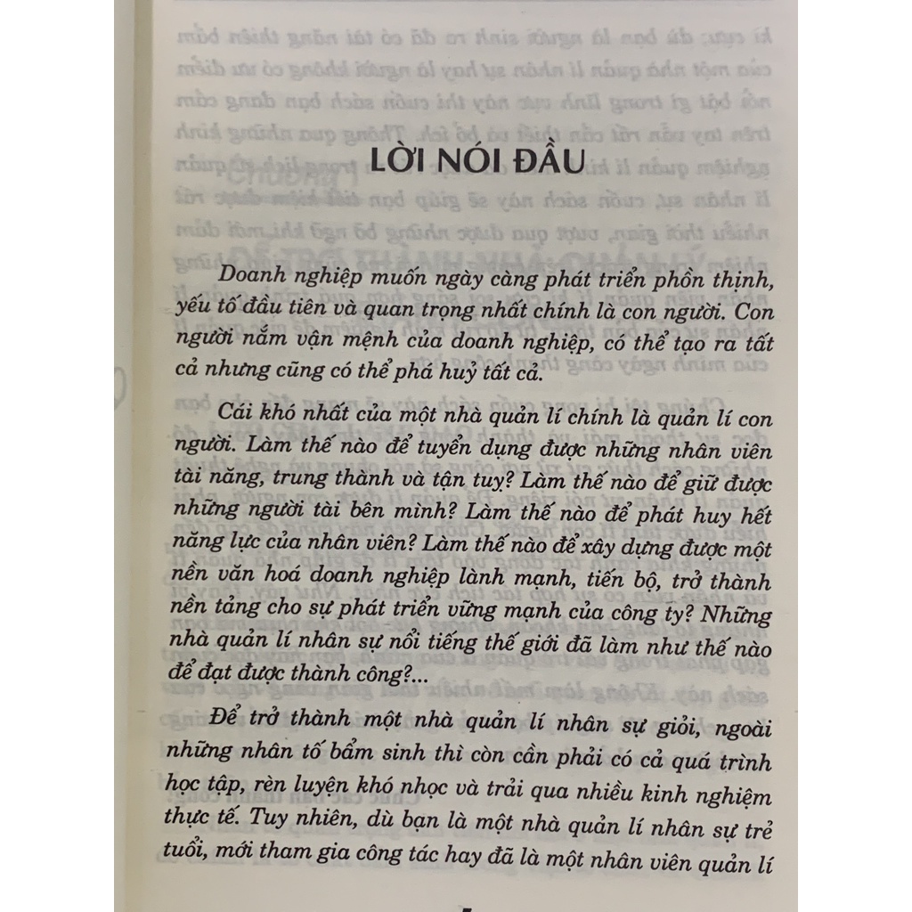 Để trở thành một nhà quản lý nhân sự giỏi, ngoài những nhân tố bẩm sinh còn cần có cả quá trình học tập, rèn luyện khó nhọc và trải qua nhiều kinh nghiệm thực tế. Tuy nhiên, dù bạn là một nhà quản lý nhân sự trẻ tuổi, mới tham gia công tác hay đã là một nhà quản lý nhân sự trẻ tuổi, mới tham gia công tác hay đã là một nhân viên quản lý kì cựu; dù bạn là người sinh ra đã có tài năng thiên bẩm của một nhà quản lý nhân sự hay bạn không có ưu điểm nổi bật gì trong lĩnh vực này thì cuốn sách này vẫn rất cần thiết và bổ ích.