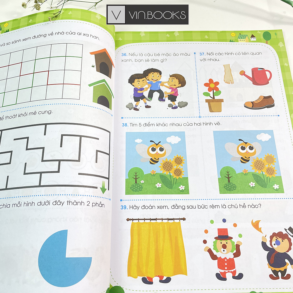 SÁCH - SÂN CHƠI TRÍ TUỆ RÈN LUYỆN NÃO TRÁI NÃO PHẢI CHO BÉ TỪ 4-5 TUỔI ---------------------------------------------------------- 📚 Sách giữ vai trò quan trọng đối với con người, đặc biệt là trẻ nhỏ. Sách đem đến kiến thức và trang bị cho trẻ những kỹ năng và giúp trẻ phát triển tâm hồn. Tuy nhiên, cùng với sự phát triển nhanh chóng của khoa học công nghệ, nhiều bậc phụ huynh quên mất vai trò của sách với trẻ thơ. ---------------------------------------------------------- 📕 GIỚI THIỆU SÁCH "SÂN CHƠI TRÍ TUỆ RÈN LUYỆN NÃO TRÁI NÃO PHẢI CHO BÉ TỪ 3-4 TUỔI" ❖ 3-4 tuổi là giai đoạn phát triển mạnh nhất về thể chất và trí tuệ. Để giúp não bộ phát triển toàn diện thì ngay từ giai đoạn này, cần có phương pháp rèn luyện hiệu quả. Não trái phụ trách các vấn đề về ngôn ngữ, logic, toán học, quan sát, suy luận; não phải thiên về cảm xúc, hình ảnh, âm nhạc, nghệ thuật. Vì vậy, một sự dẫn dắt đúng hướng và rèn luyện chuyên nghiệp là vô cùng quan trọng.
