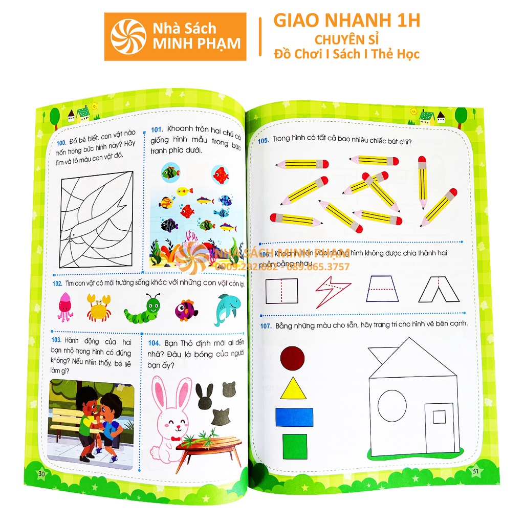GIỚI THIỆU SẢN PHẨM Sách Sân Chơi Trí Tuệ Trò Chơi Tư Duy Rèn Luyện Não Trái Não Phải - 3-6 tuổi là giai đoạn phát triển mạnh nhất về thể chất và trí tuệ. Để giúp não bộ phát triển toàn diện thì ngay từ giai đoạn này, cần có phương pháp rèn luyện hiệu quả. Não trái phụ trách các vấn đề về ngôn ngữ, logic, toán học, quan sát, suy luận; não phải thiên về cảm xúc, hình ảnh, âm nhạc, nghệ thuật. Vì vậy, một sự dẫn dắt đúng hướng và rèn luyện chuyên nghiệp là vô cùng quan trọng. - Với bộ sách Sân Chơi Trí Tuệ - Trò Chơi Tư Duy - Rèn Luyện Não Trái, Não Phải, cha mẹ có thể giúp trẻ phát huy tối đa tiềm năng não bộ theo hướng toàn diện, mở rộng ưu thế, khắc phục những điểm yếu trong trí tuệ với các trò chơi thú vị như mê cung, tô màu, ghi nhớ, tìm điểm khác nhau, suy luận logic, nối từ... - Không chỉ kích thích phát triển trí tuệ, bộ sách còn là món quà giúp cha mẹ cùng chơi cùng học và cùng con khôn lớn, hạn chế tiếp xúc các thiết bị điện tử.