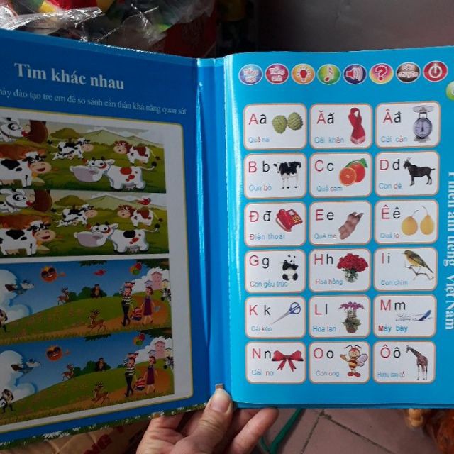 - Sách còn được tích hợp phổ biến câu truyện cổ tích hay mà những bé rất thích được nghe kể. chỉ cần nhấn nút trên bảng điều khiển và chọc câu truyện cần nghe..