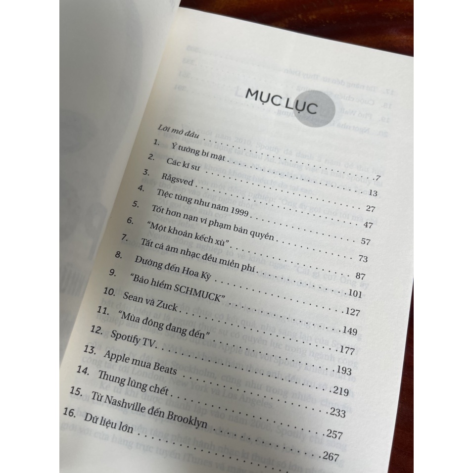 GIỚI THIỆU NỘI DUNG: Qua lăng kính và ngòi bút của hai nhà báo Thụy Điển Sven Carlsson và Jonas Leijonhufvud, câu chuyện về quá trình hình thành và trỗi dậy đầy ngoạn mục để trở thành gã khổng lồ trong ngành dịch vụ cung cấp âm nhạc kĩ thuật số của S.p.otify được hiện ra sống động và kịch tính. S.p.otify và những câu chuyện chưa kể “hấp dẫn như kịch bản một bộ phim điện ảnh”, trong đó “ghi lại đầy đủ câu chuyện về cách công nghệ đã thay đổi âm nhạc và về những người đã biến giấc mơ đó thành hiện thực”. Trải qua bao thăng trầm và biến động, Daniel Ek đã viết nên câu chuyện khởi nghiệp thành công và S.p.otify ngày nay với hơn 50 triệu bài hát, hơn một triệu podcast và phủ sóng hơn 90 quốc gia cùng lượng người sử dụng đạt 350 triệu vào năm 2021. Có thể coi S.p.otify và những câu chuyện chưa kể là một cuốn hồi kí dài với nhiều câu chuyện đan xen suốt dọc chiều dài phát triển của S.p.otify. Cuốn sách không chỉ mang đến câu chuyện khách quan về hành trình bước tới đỉnh vinh quang của một dự án khởi nghiệp mà mọi doanh nhân biết cảnh giác cũng như mọi gã khổng lồ ở Thung lũng Silicon đều phải sợ hãi khi đối đầu; mà còn đi sâu tìm hiểu quá trình mang tính đột phá của ngành công nghiệp âm nhạc và các nhân vật đằng sau cuộc thập tự chinh âm thanh toàn cầu của gã khổng lồ Thụy Điển. Cuốn sách không chỉ kể về câu chuyện thành công của đơn vị đã giải quyết vấn nạn vi phạm bản quyền, biến đổi ngành công nghiệp âm nhạc và đưa hoạt động truyền phát trực tuyến trở thành chuẩn mực mới; mà còn mang đến câu chuyện về các cuộc chiến trực tuyến khốc liệt từ đó khắc họa rõ nét sự vươn lên bền bỉ của một doanh nghiệp truyền phát âm trực tuyến trong khi phải chống lại sự công kích từ nhiều phía. Cuốn sách còn bao gồm cả những đoạn phỏng vấn, hội thoại chưa từng tiết lộ với những nhân vật nổi tiếng như: Mark Zuckerberg, Steve Jobs, Taylor Swift, Jay-Z, Sean Parker, Pony Ma Huateng và Jimmy Iovine về suy nghĩ của họ đối với S.p.otify. Chính vì hàm chứa tính thời sự, tính xuyên suốt cùng lượng thông tin khổng lồ mà cuốn sách đã thu hút được sự quan tâm của độc giả cũng như của giới chuyên môn, nhờ đó cuốn sách đã được N.e.t.fl.i.x mua lại và chuẩn bị dựng thành phim. Bản quyền đã được bán cho hơn 10 quốc gia.
