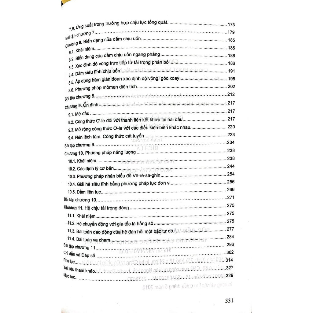 Cuốn sách bao gồm 11 chương (mỗi chương đều có phần lý thuyết và bài tập), nêu các kiến thức cơ bản về nội lực, ứng suất, biến dạng, chuyển vị; các hình thức chịu lực cơ bản: thanh chịu kéo, nén, uốn, xoắn, thanh chịu lực phức tạp; tính toán ổn định; tính chuyển vị bằng phương pháp năng lượng; giải hệ