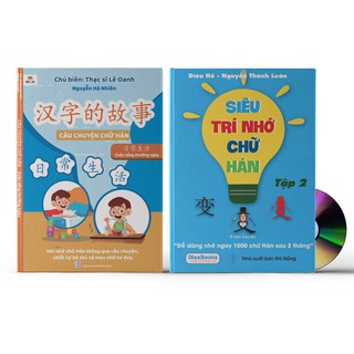 Sách-Combo: Câu chuyện chữ Hán cuộc sống hàng ngày + Siêu trí nhớ chữ Hán tập 2 in màu + DVD tài liệu