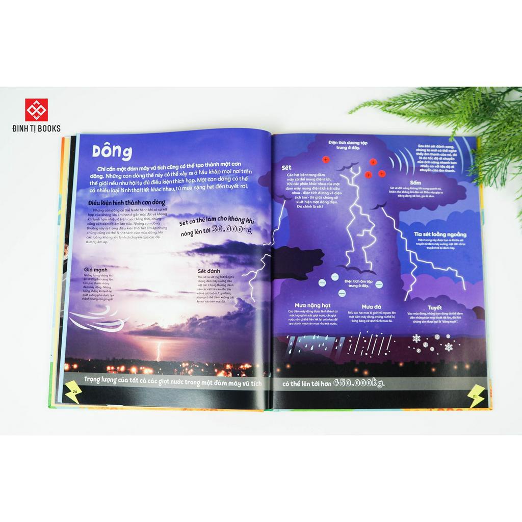 Nội dung: Tại sao phải nghe dự báo thời tiết? Tại sao trời lại mưa? Tại sao sét lại nguy hiểm?... Chắc chắn đó là những câu hỏi mà ông bố bà mẹ nào cũng từng bị hỏi rất nhiều lần. Và có lẽ bố mẹ cũng thấy rằng, thật khó để giải thích chính xác thời tiết là gì, thời tiết bao gồm những gì, dông từ đâu mà có, sét nguy hiểm như thế nào... Nhưng với cuốn sách "Thời tiết là gì?", mọi thứ đều trở nên đơn giản và rõ ràng. Mỗi một khái niệm bên trong cuốn sách này đều được viết vô cùng ngắn gọn, cùng với đó là những hình ảnh minh họa trực quan giúp mọi đứa trẻ đều có đọc hiểu một cách dễ dàng. Xuyên suốt những trang sách đầy màu sắc và ngập tràn năng lượng, trẻ sẽ khám phá ra nhiều điều thú vị về thời tiết; học được mọi điều cần biết về hiện tượng nóng lên toàn cầu, các mùa trong năm và thậm chí là các hiện tượng thời tiết kỷ lục, từ đó có suy nghĩ và hành động đúng đắn để góp phần bảo vệ Trái Đất trong tương lai. Hãy gạt bỏ những diễn giải nặng tính chuyên môn về thời tiết, cầm cuốn sách này lên và tìm hiểu thời tiết với tâm thế của một đứa trẻ. Bố mẹ sẽ thấy thời tiết không chỉ là chuyện mưa nắng mỗi ngày, mà còn là rất nhiều điều thú vị khác đang chờ đón. Cùng con khám phá ngay bố mẹ nhé.