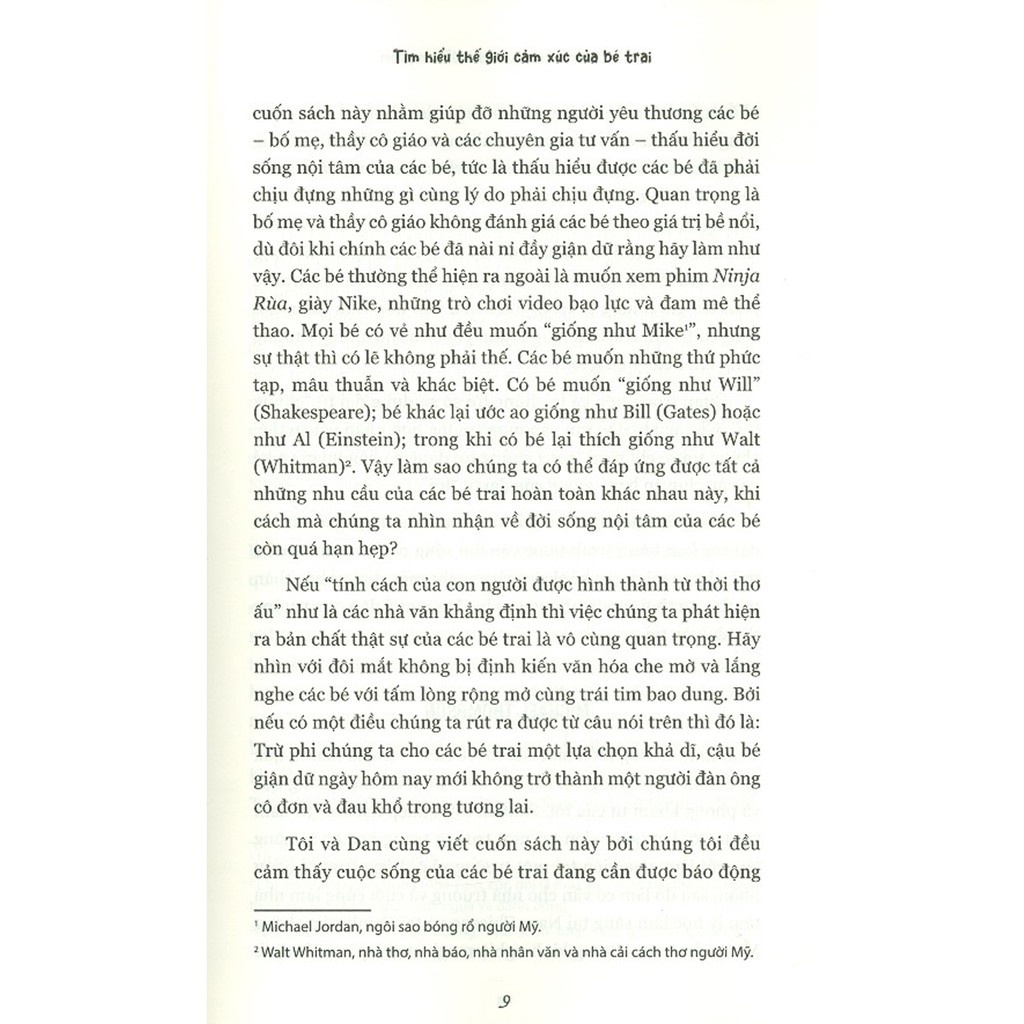 Cuốn sách sâu sắc này là dành cho những bậc làm cha làm mẹ, giáo viên hay bất cứ ai quan tâm tới nuôi dạy các bé trai thành những thanh niên, người đàn ông trưởng thành, khoẻ mạnh cả về thể chất lẫn tình thần, và tuyệt nhiên tràn đầy cảm xúc.