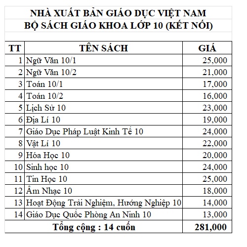 Sách - Trọn bộ 14 cuốn sách giáo khoa lớp 10 (Kết nối tri thức với cuộc sống)Sách - Trọn bộ 14 cuốn sách giáo khoa lớp 10 (Kết nối tri thức với cuộc sống)Sách - Trọn bộ 14 cuốn sách giáo khoa lớp 10 (Kết nối tri thức với cuộc sống)Sách - Trọn bộ 14 cuốn sách giáo khoa lớp 10 (Kết nối tri thức với cuộc sống)Sách - Trọn bộ 14 cuốn sách giáo khoa lớp 10 (Kết nối tri thức với cuộc sống) Giá BYN