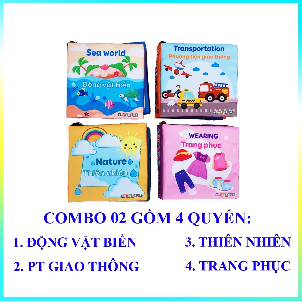 Đồ Chơi > Đồ chơi giáo dục > Đồ chơi nhập vai > Sách vải cho bé kích thích đa giác quan nhiều chủ đề song ngữ tiếng anh và tiếng việt, thương hiệu BÉ HEO SỮA