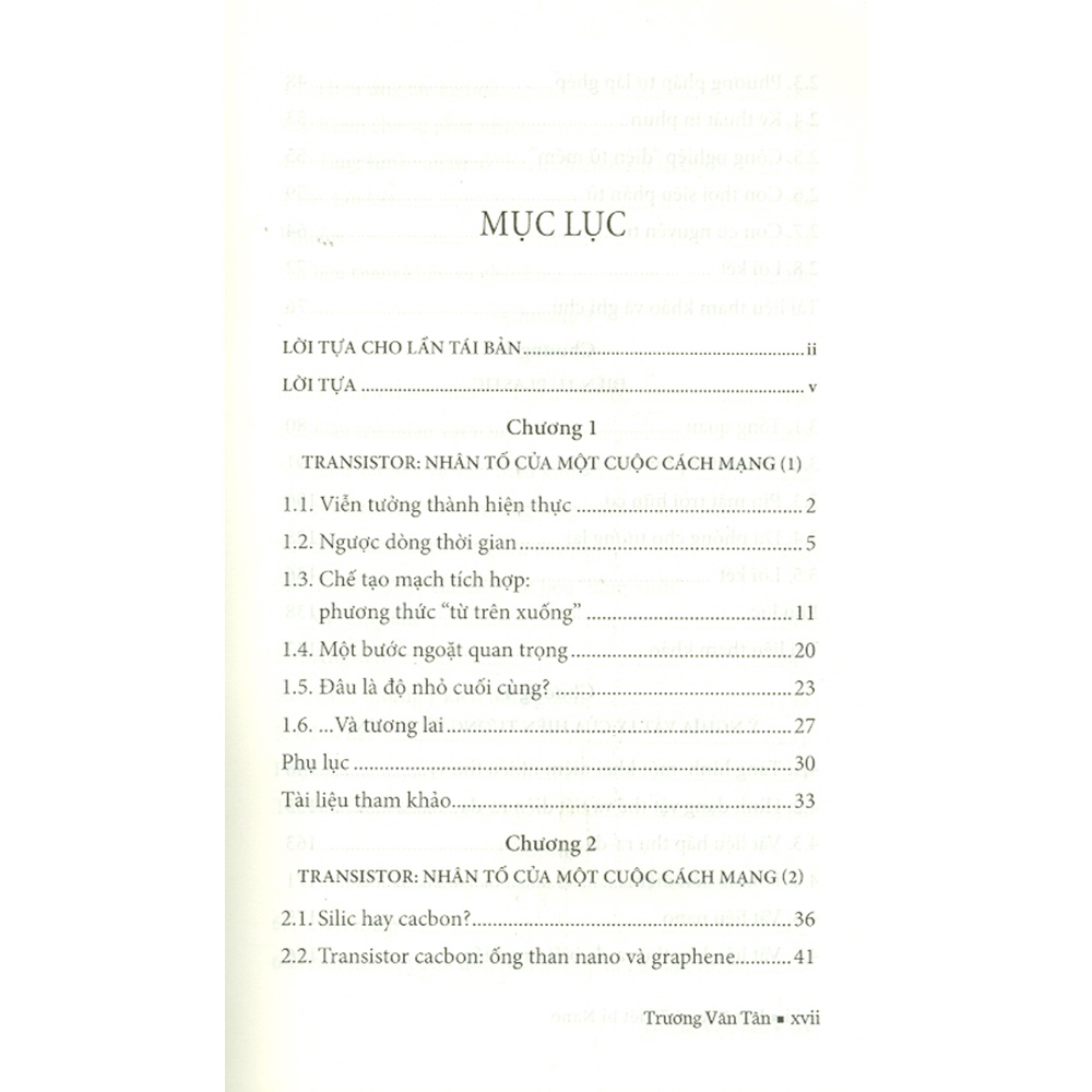 Sách - Vật Liệu Và Thiết Bị Nano Tác giả Trương Văn Tân Nhà xuất bản NXB Tổng Hợp Thành Phố Hồ Chí Minh Đơn vị phát hành NXB Tổng Hợp Thành Phố Hồ Chí Minh Ngày xuất bản 07-2018 Số trang 518 Kích thước 13.5 x 21 cm Loại bìa Bìa mềm Nội dung "Quyển sách tập hợp những bài tản văn khoa học kể lại những công trình thú vị và đột phá liên quan đến vật liệu và thiết bị nano, và bước tiến tương lai của chúng. Đó là transistor trong các dụng cụ điện tử, điện tử plastic, vật liệu tàng hình, siêu vật liệu, graphene, những vật liệu và cấu tạo nano của thiên nhiên như xương động vật, cánh chim bay, vỏ của các loài giáp xác, da và vảy của loài cá, phản ứng quang hợp trong thực vật và vi khuẩn, và ""nam châm"" định hướng của loài chim di trú.