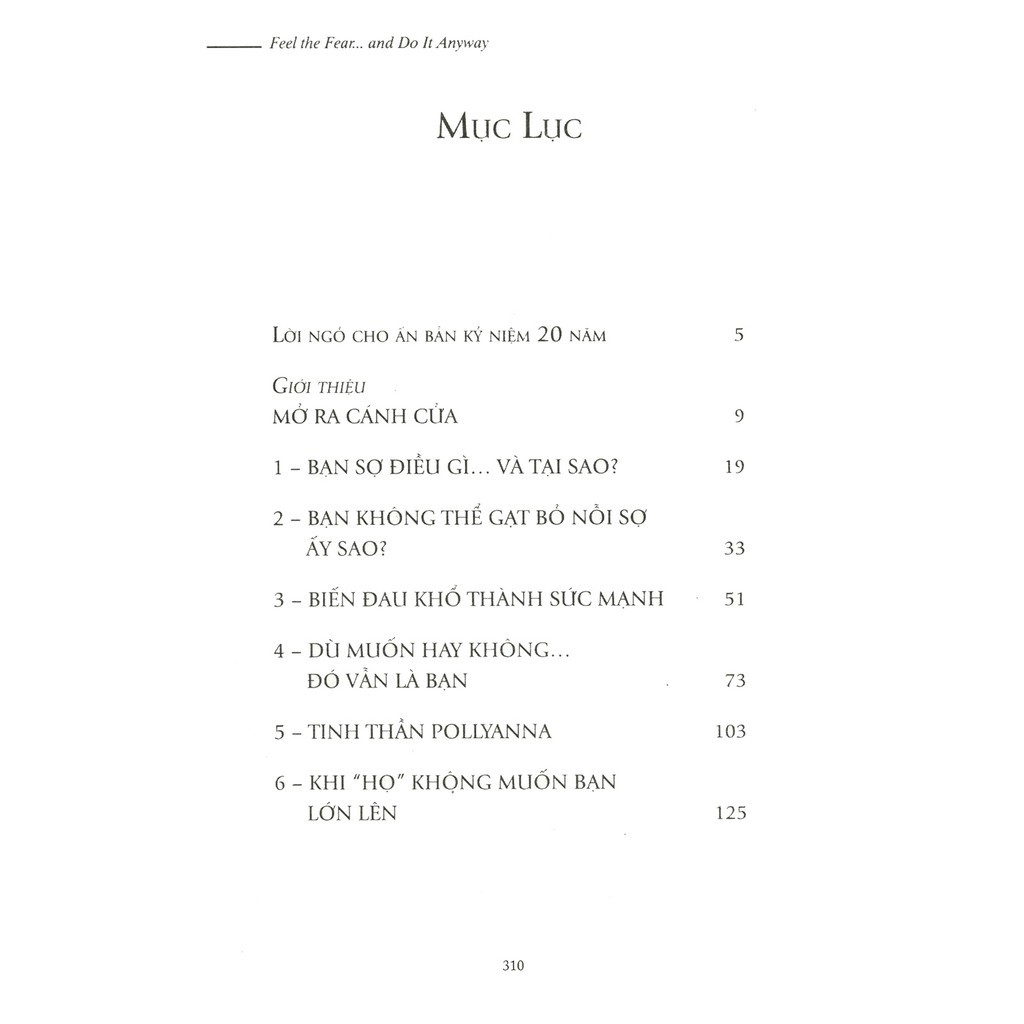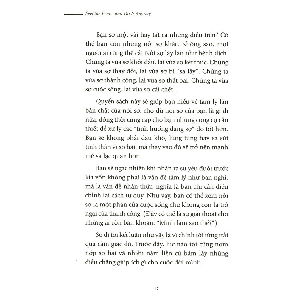 Công ty phát hành: First News - Trí Việt Tác giả: Susan Jeffers Ngày xuất bản: 2019 Kích thước: 13 x 20.5 cm Nhà xuất bản: NXB Tổng hợp TP.HCM Số trang: 312 Gía: 98.000VNĐ Mô tả sản phẩm: Nỗi sợ hãi tiềm ẩn dưới rất nhiều dạng. Nỗi sợ thật ra không đơn giản chỉ là cảm giác lạnh sống lưng khi bạn xem một bộ phim kinh dị hay như tim bạn đập mạnh khi phạm lỗi lầm và sợ bị bố mẹ phát hiện. Hãy cùng khám phá những rào cản khiến chúng ta không thể sống cuộc đời mình theo cách chúng ta mong muốn. Nhiều người tránh né cuộc sống bằng cách chọn con đường bằng phẳng, dễ đi nhất. Nhưng, bạn có biết rằng càng tránh né, lòng vòng, không dám nhìn thẳng vào vấn đề thì những vấn đề đó sẽ càng tích tụ lại, ngày qua ngày trở nên to lớn hơn, đáng sợ hơn, như một cục u lâu năm có thể biến thành ung thư, sẽ gây tác hại lớn hơn tới sức khỏe tâm hồn và thể chất của bạn. Ngay kể cả khi, bạn đối diện với bác sĩ tâm lý và cố gắng tìm một liệu pháp chữa trị từ sự hỗ trợ của chuyên gia, cũng chưa chắc đã đúng là giải pháp để có thể vượt qua nỗi sợ.