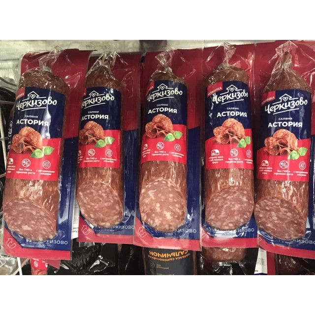 Cách sử dụng: Bóc lớp vỏ của salami sau đó thái lát thật mỏng. HSD 3 tháng kể từ ngày sản xuất. Sản xuất bởi nhà máy Cherkizovo tại Nga, nhập khẩu và phân phối bởi công ty Nguyễn Hồng Hà Nội.