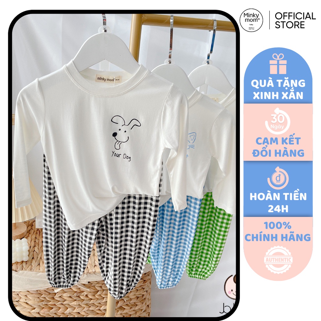 Giới thiệu [SALE] Bộ Thun Lạnh Dài Tay Alibaba Cho Bé Trai, Bé Gái Minky Mom In Ngực Quần Caro, Đồ Bộ Cho Bé Mặc Nhà MKMTD2214