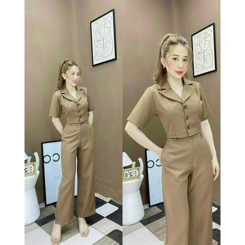 Giới thiệu (Sale FreeShip) Sét vest nữ ống rộng thiết kế áo from croptop mix quần có túi,chất for cao cấp lên from chanh sả