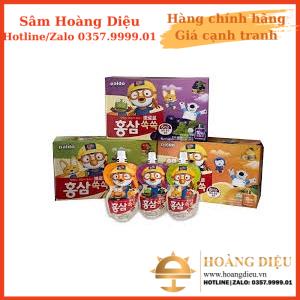 Giới thiệu SÂM HOÀNG DIỆU - Nước sâm trẻ em trái cây Pororo hồng sâm 3 vị nho, táo, cam 100ml x 10 gói