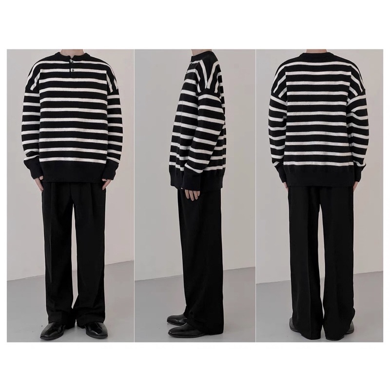 Giới thiệu <<Có sẵn>> Áo len linen cổ tròn tay dài kiểu sọc phong cách Hàn quốc dành cho nam mùa thu đông năm 2022