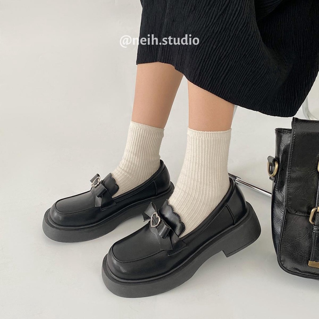 Giới thiệu [SẴN] Giày da nữ đế dày nơ nhỏ trái tim phong cách mới giày lười Nhật Bản 2022 neih.studio [103]