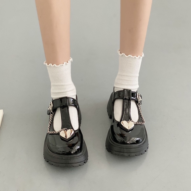 Giới thiệu [Sẵn]✨Giày Lolita Oxford quai chữ T đính xích trái tim ( Size 35-39). 2275