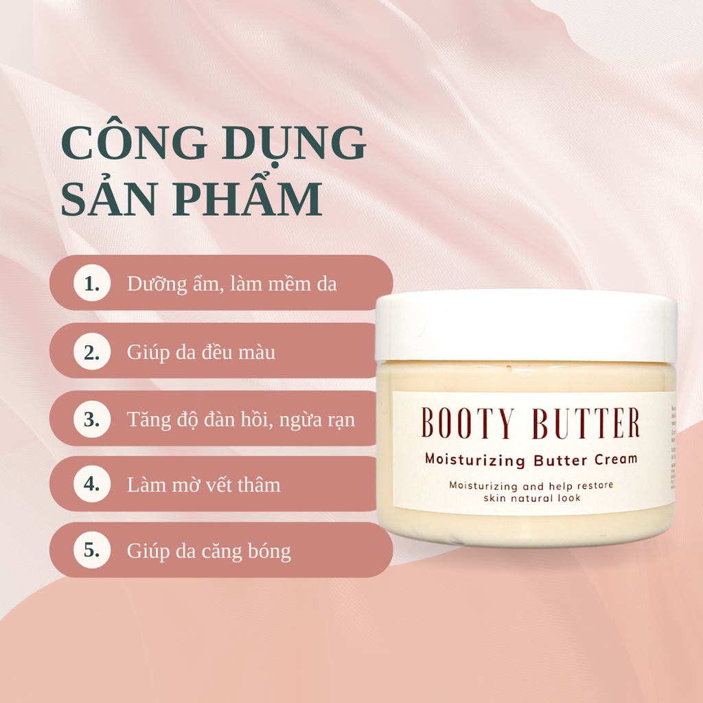 - Sau khi tắm với tẩy da chết Browny Scrub, thoa đều kem dưỡng Booty Butter trực tiếp lên toàn thân giúp da mềm mại, bóng khỏe. Nên sử dụng sản phẩm 2 lần/mỗi ngày.