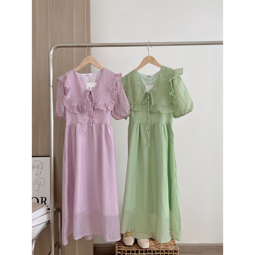 Giới thiệu [SẴN/VIDEO] Váy Tơ Đũi Nhăn 2 Lớp Cổ Viền Bèo Tiểu Thư Maxi Đi Chơi Đi Biển Siêu Xinh