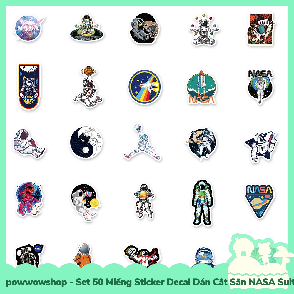 Giới thiệu [Sẵn VN - Hỏa Tốc] Set 50 Miếng Sticker Decal Cắt Sẵn DIY Dán Trang Trí Vật Dụng Mẫu NASA Suitcase Water Cup