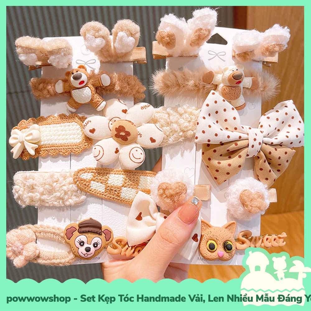 Giới thiệu [Sẵn VN - Hỏa Tốc] Set Kẹp Tóc Handmade Vải, Len Nhiều Mẫu Đáng Yêu Hoạt Hình Warn White & Brown