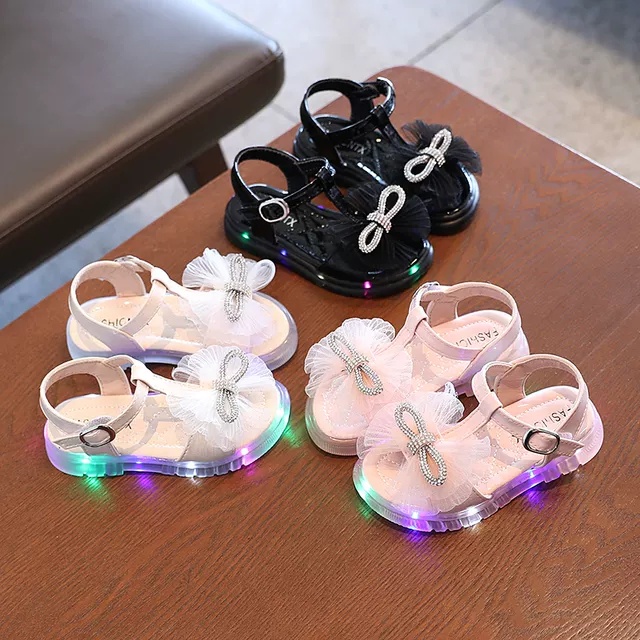 Giới thiệu sandal bé gái - dép quai hậu cho bé có đèn led siêu đẹp, da bóng nơ siêu điệu 1-8 tuổi 620