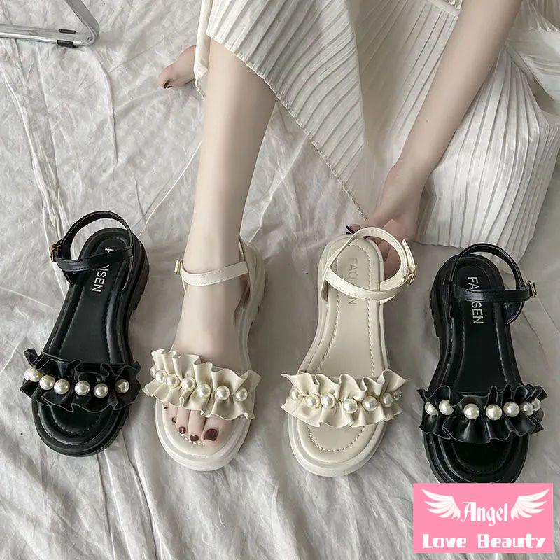 Giới thiệu Sandal Đế Xuồng Dày Dặn Đính Ngọc Trai Phong Cách Hàn Quốc Thời Trang Mùa Hè 2022 Cho Nữ