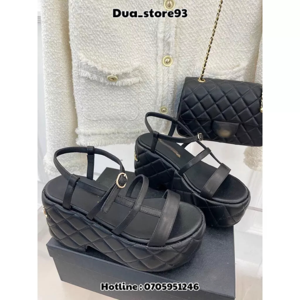 Giới thiệu Sandal đế xuồng quai mảnh da trần chỉ đế 8cm hack dáng cao cấp