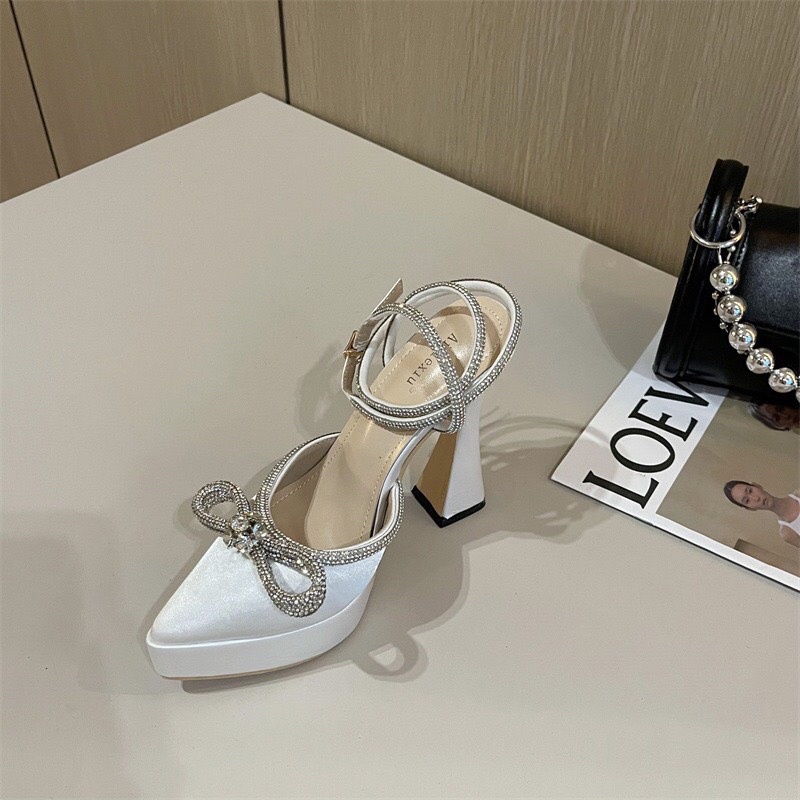 Giày Dép Nữ > Giày Cao Gót > Sandal đúp tôn dáng chất lụa nơ đá Fullbox