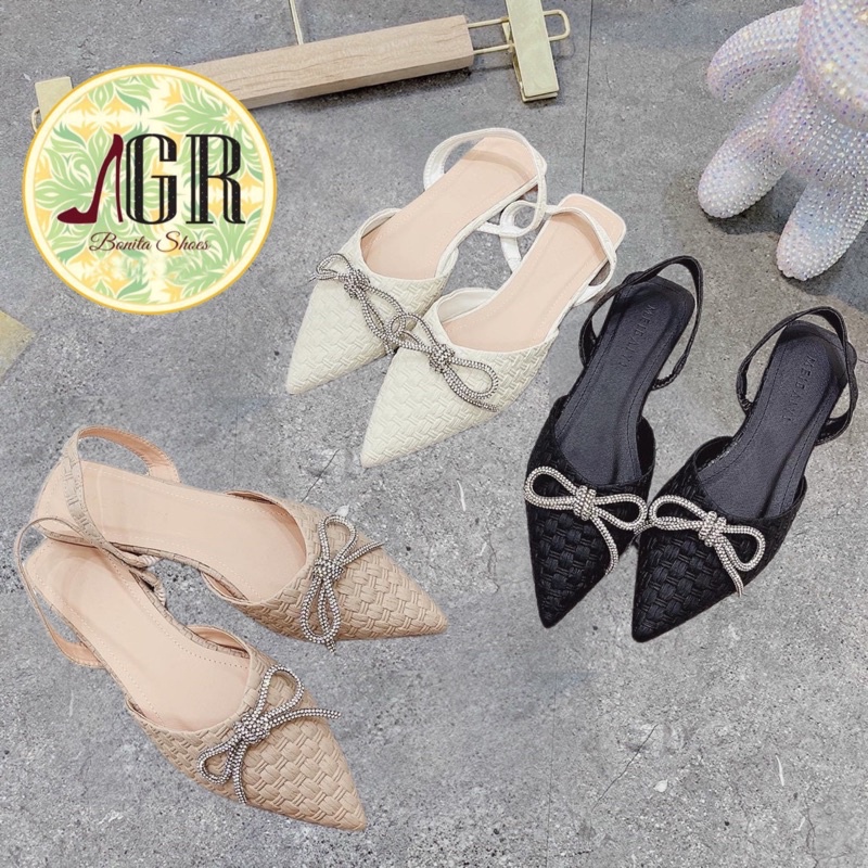 Sandal mũi nhọn đan nổi khoá nơ đính đá cao cấpGiá PHTR