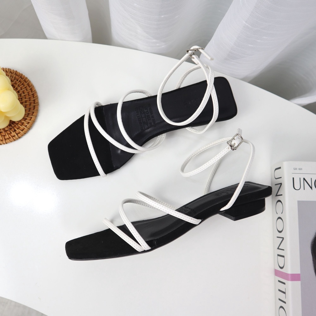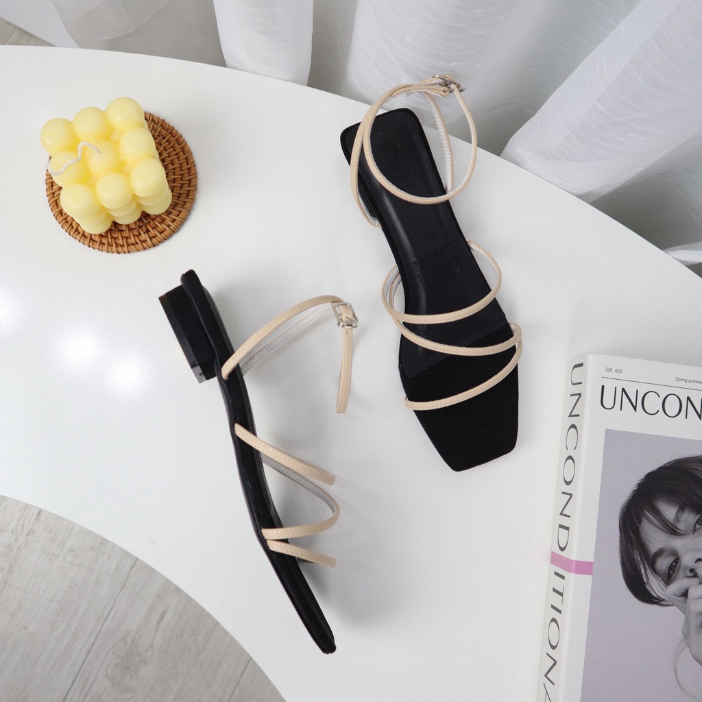 Giới thiệu Sandal Quai Mảnh Dép Đi Biển Cillie Mũi Vuông Bằng Da Cao Cấp Gót Trụ Phối Kim Loại 2cm 1064