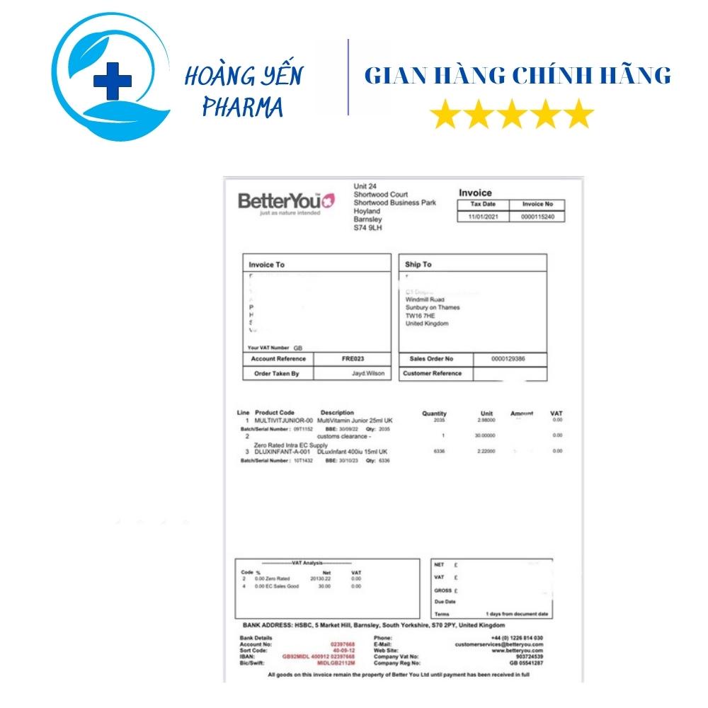 -Xuất xứ: Anh -Thương hiệu: BetterYou Date: tháng 7/24. Đây là date của lô hàng trong lúc cập nhật mô tả sản phẩm, date này có thể khác so với lô hàng hiện tại shop đang bán do shop chưa kịp cập nhật. Shop bán hàng date xa, nếu quý khách muốn biết date chính xác nhất thì vui lòng inbox shop trước khi mua hàng nhé.