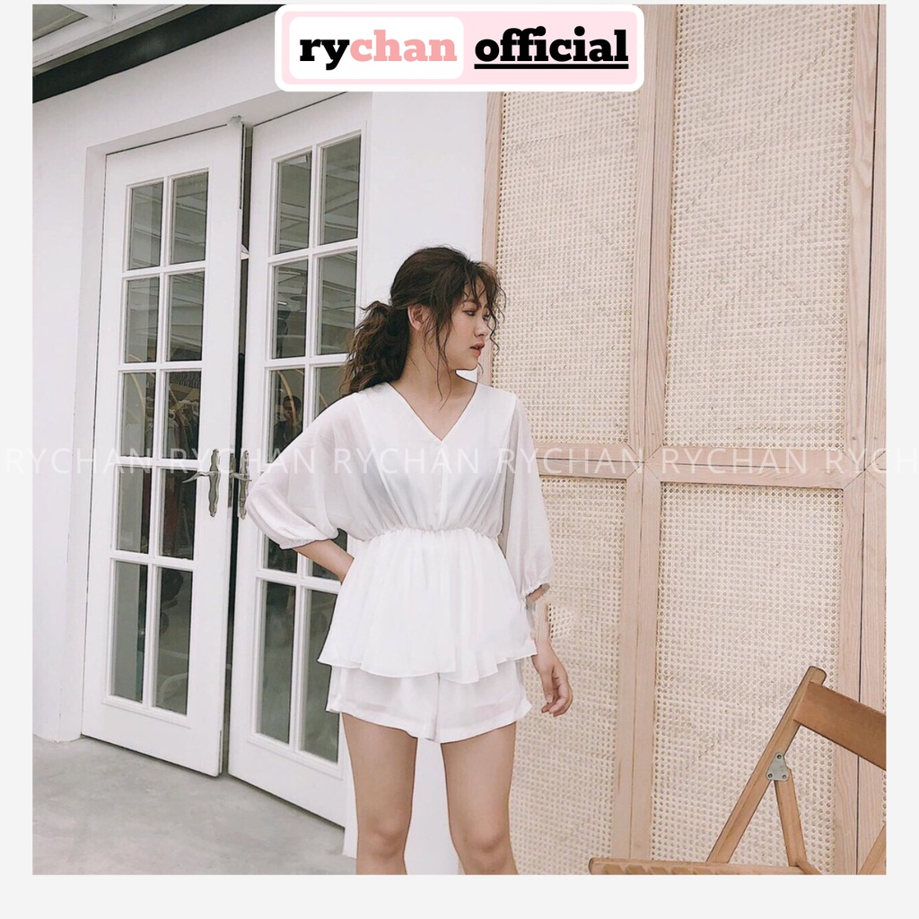 🌸 Chi tiết sản phẩm SE844 - Set Áo Trắng Cổ V Mix Quần Short Set Trắng Đi Biển Set Đi Chơi Voan Lụa 2 Lớp Dày Dặn :
