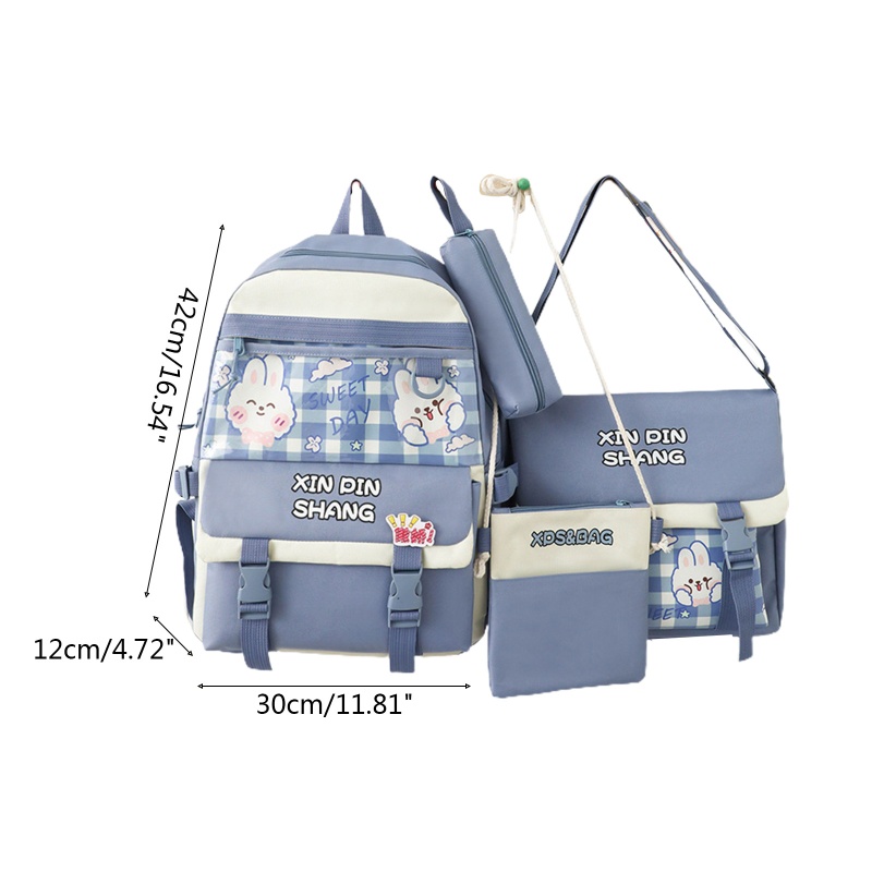 4 miếng Dung tích lớn Túi đeo vai cô gái dễ thương Học sinh thời trang Hàn Quốc Đặc điểm " Kích thước ba lô dễ thương " Kích thước của ba lô là Xấp xỉ 30x42x12cm '11.81x16.53x4.72in. Xem mô tả hình ảnh để biết chi tiết . Chất lượng cao - Được làm bằng vải nylon chất lượng cao và nhẹ , chắc chắn , bền và không thấm nước . Đường khâu chắc chắn và dây đai chắc chắn. đủ chắc chắn cho công suất lớn . Với khóa kéo chất lượng cao , bạn có thể đóng mở túi một cách trơn tru. Dung tích lớn - Ba lô và Tote Bage cung cấp sức chứa lớn , đủ lớn để chứa đồ đạc hàng ngày của bạn . Bạn có thể đặt máy tính xách tay , sách và các phụ kiện khác bên mình . Thiết kế tiện dụng - Ba lô trẻ em đi học được thiết kế tiện dụng. dây đai có thể điều chỉnh và tháo rời . Giảm áp lực lên vai. và gối bằng chất liệu thấm cao , chưa bao giờ che mồ hôi , nếu bạn đeo lâu . Cho Lý tưởng : Bộ ba lô lý tưởng cho bạn bè , trẻ em , đồng nghiệp học sinh , Thích hợp cho các bé gái , bé trai , thanh thiếu niên , người lớn và phụ nữ. họ sẽ thích nó .