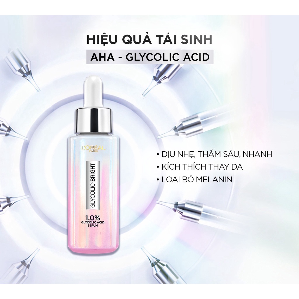 Serum Dưỡng Trắng Sáng Mờ Thâm Nám L'Oreal Paris Glycolic Bright 1.0% Glycolic Acid (AHA) 30ml