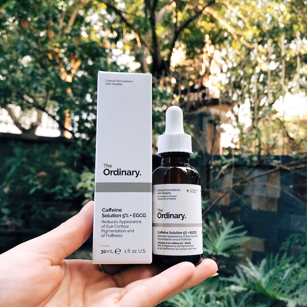 The Ordinary Caffeine Solution 5% + EGCG là serum dành riêng cho vùng mắt. Với hai thành phần chính là tinh chất caffein ở nồng độ cao và chất chống oxy hoá lừng lẫy EGCG được chiết xuất từ trà xanh, The Ordinary Caffeine Solution 5% + EGCG được nhà sản xuất cho rằng có thể cải thiện được tình trạng bọng và thâm quầng mắt.