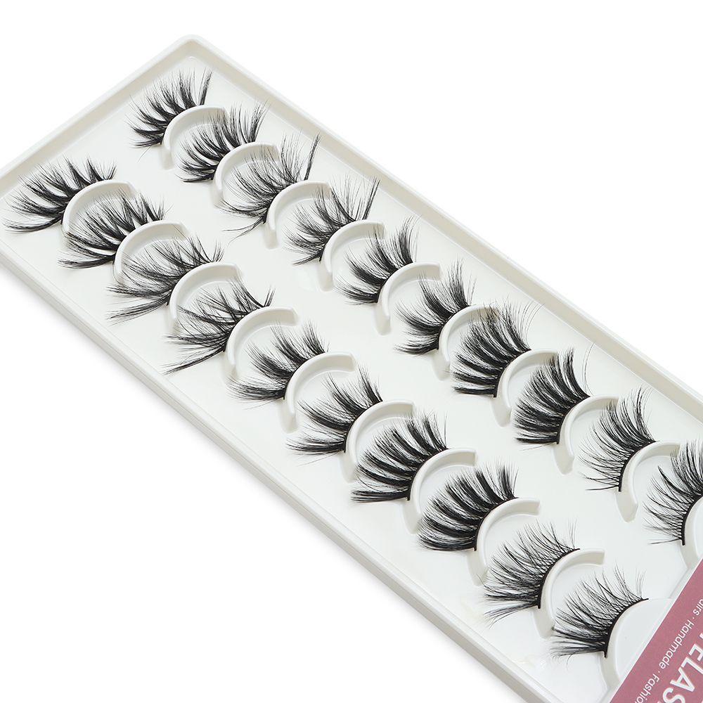 Nếu cần , hãy thoa phấn mắt hoặc kẻ mắt để đường viền mắt của bạn trông tự nhiên hơn Lông mi nửa mắt đan chéo 3D Faux Mink Lông mi giả dài tự nhiên Độ dày Lông mi làm bằng tay Mở rộng lông mi Dụng cụ trang điểm mắt Không độc hại