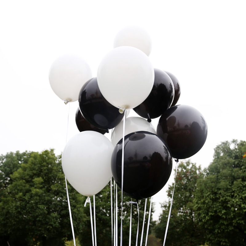 Giới thiệu Set 10 bong bóng bơm hơi màu trắng / đen 10 inch trang trí tiệc tùng