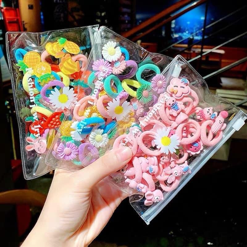 Giới thiệu SET 10 CHUN BUỘC TÓC HOA QUẢ CHO BÉ - CHUN MỀM KHÔNG ĐAU TÓC