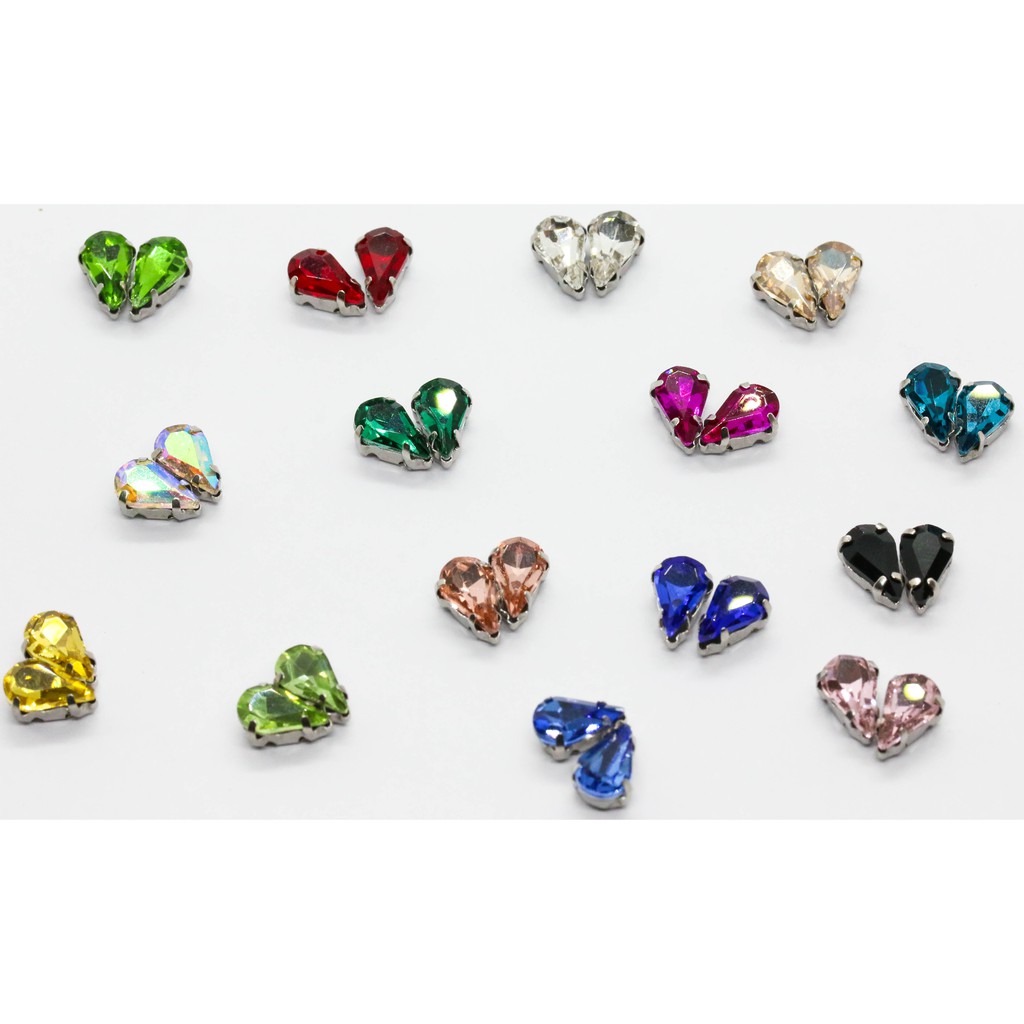 Giới thiệu Set 10 hạt đá giọt nước nhọn đế bạc lỗ khâu link1/2 (màu 1-12) Cici Handmade chuyên hạt đá hạt pha lê hạt cườm hạt trang