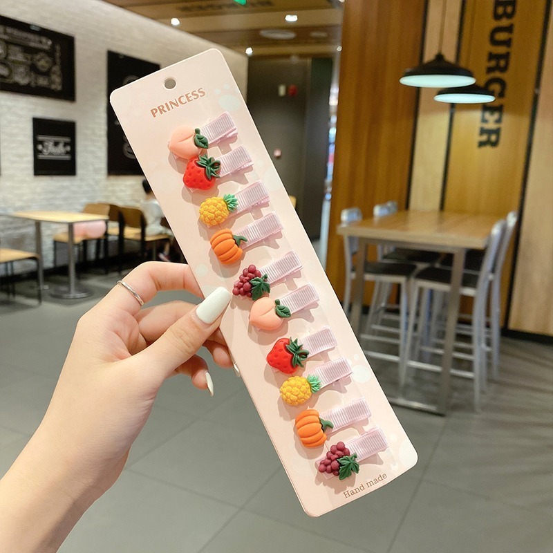 Giới thiệu Set 10 Kẹp Tóc Hình Hoa / Trái Cây Hoạt Hình Phong Cách Hàn Quốc Cho Bé Gái