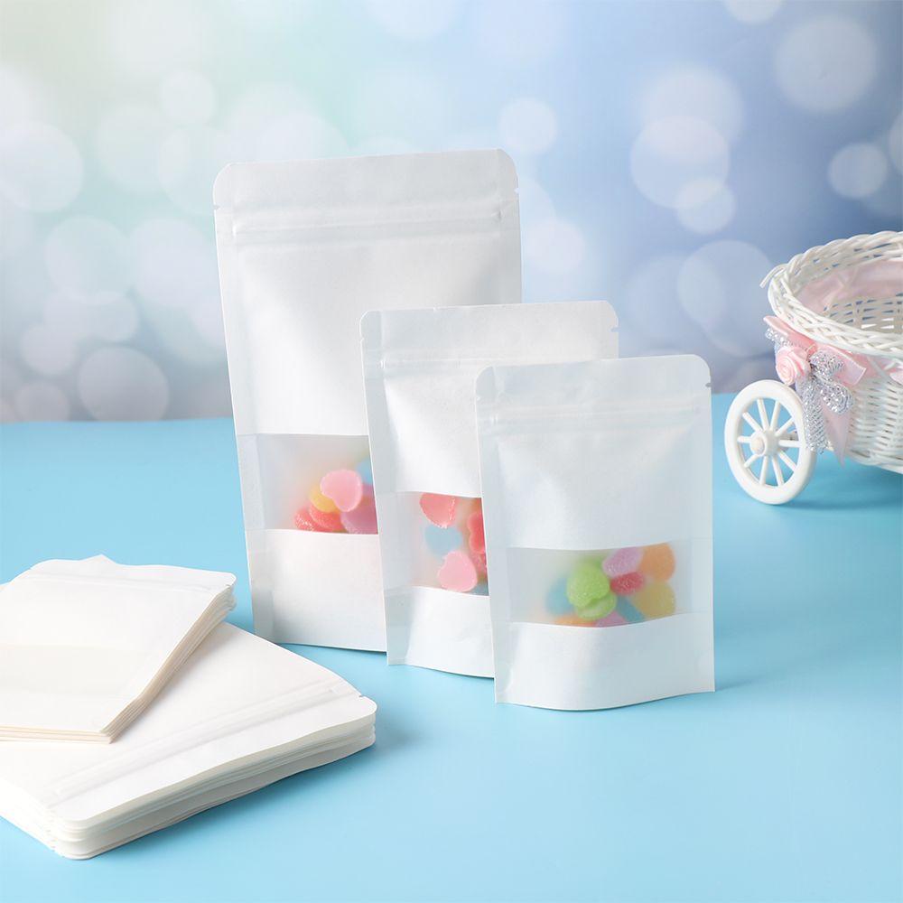 Túi giấy Kraft Dây kéo Gói bánh quy Túi đóng gói Túi đựng bánh nướng Lưu trữ cửa sổ Nguồn cung cấp cho bữa tiệc Quà tặng Thực phẩm Kẹo cưới Trắng