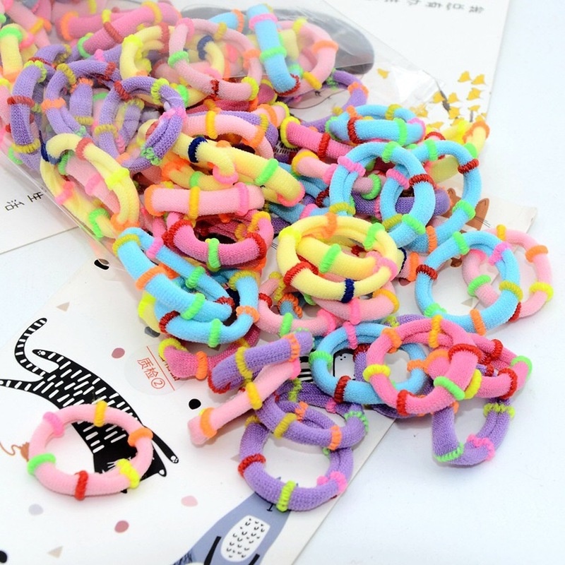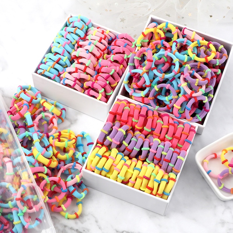 Giới thiệu Set 100 Dây Cột Tóc Co Giãn Màu Sắc Kẹo Ngọt Cho Bé Gái