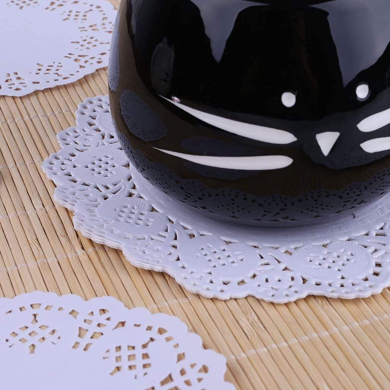 Description: High quality: each doily is made of food grade material, health and safety. Ideal for birthdays, parties, weddings tray, plates, table decorations, etc. Widely used: cake mats, food cushions, place on trays, under juice glasses, under butter, under flower vases, packaging small gifts, wedding invitations, card packaging, craft projects and scrapbooking projects, etc. Product Name: Paper Doily Material: food grade pulp paper Colour: white. Size: Diameter:3.5"(8.8cm) Quantity: 100 pieces.