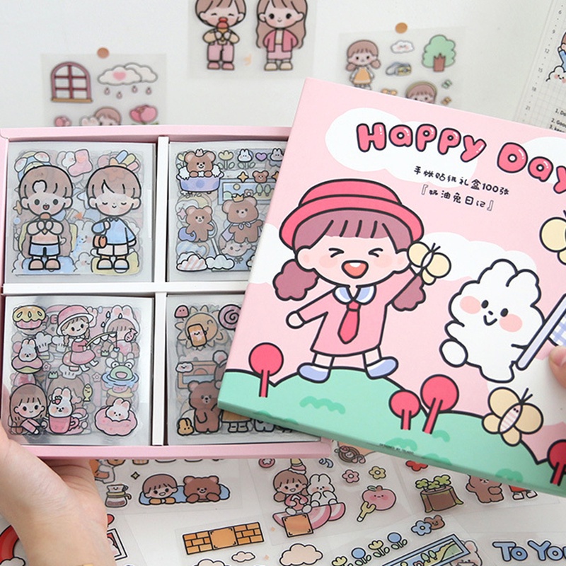 Giới thiệu Set 100 nhãn dán chủ đề động vật bằng nhựa PET bắt mắt trang trí sổ lưu niệm độc đáo
