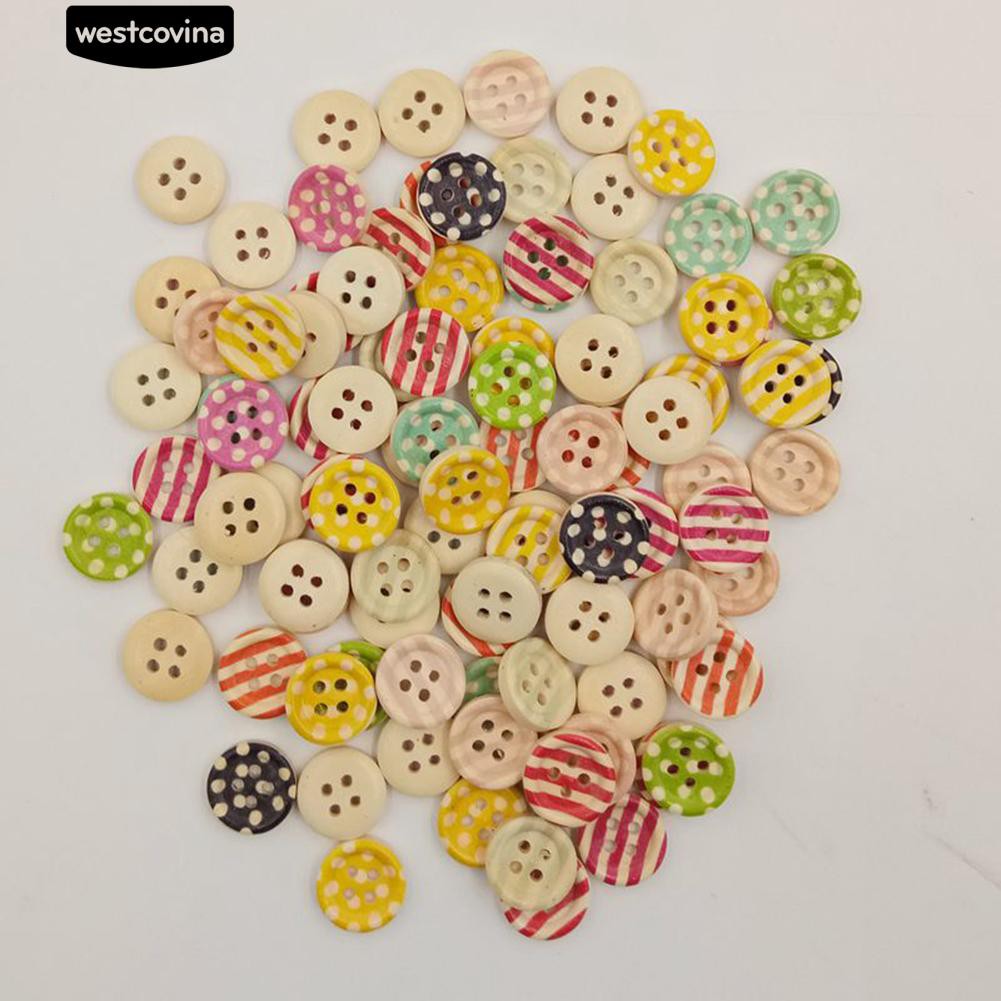 Giới thiệu Set 100 nút hình tròn 4 lỗ họa tiết sọc/ chấm bi dành cho tự làm may vá thủ công