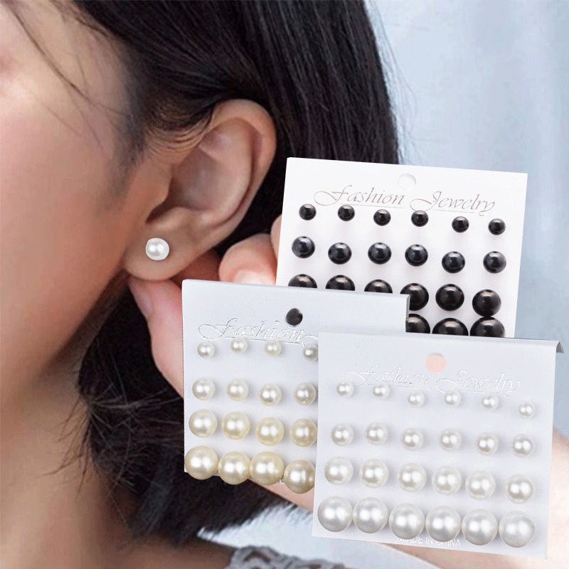 Giới thiệu Set 12 Cặp Bông Tai Ngọc Trai Giả Thời Trang Nữ