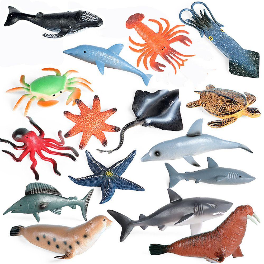 16pcs Mô hình sinh vật biển sống động như thật Bức tượng nhỏ động vật biển Mực con dấu Cá heo Cua rùa Sao biển