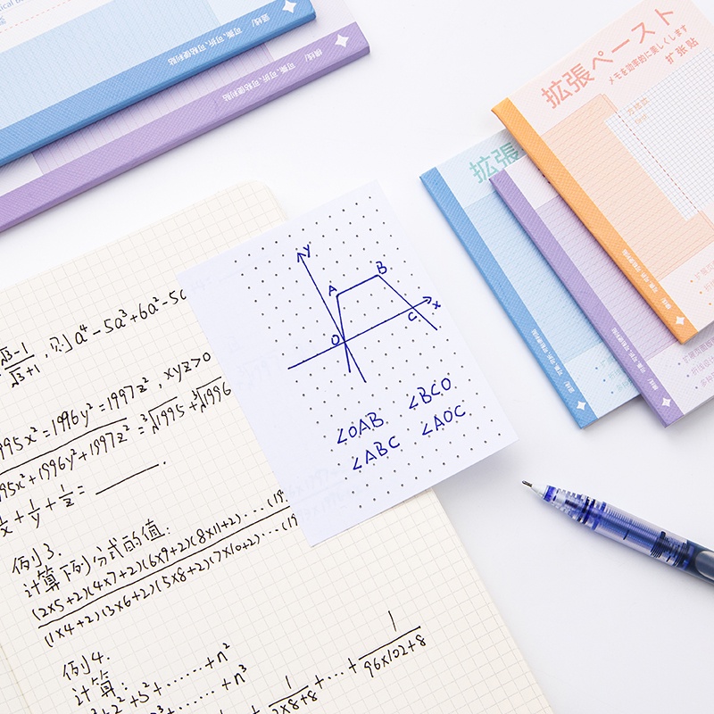 Tên sản phẩm: Ghi chú dính mở rộng đa chức năng Chất liệu: Giấy Trọng lượng: 25 g / 51 g Kích thước: S - 7,8 * 10,3 cm / L - 10,5 * 15,3 cm Gói bao gồm: 16 Tờ / Sách