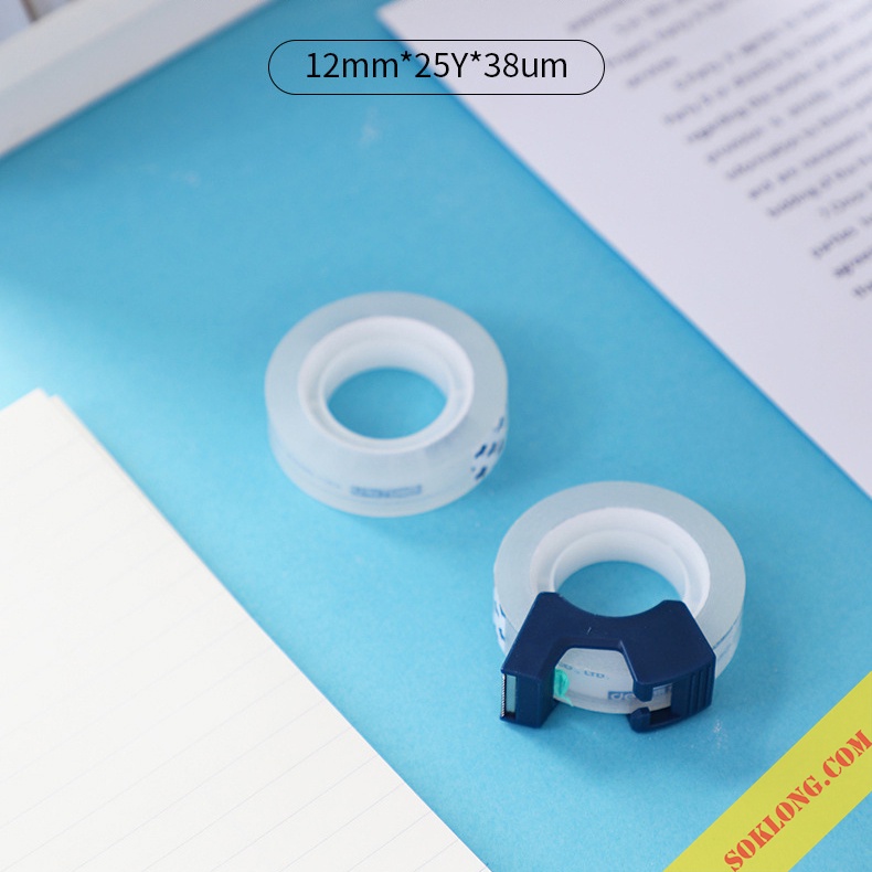 Giới thiệu Set 2 cuộn băng dính Deli trong suốt WA03B kèm dụng cụ cắt cuộn băng keo trong suốt SOKLONG